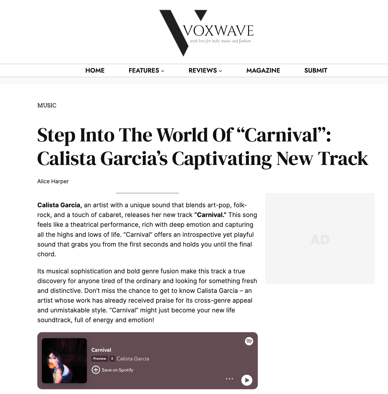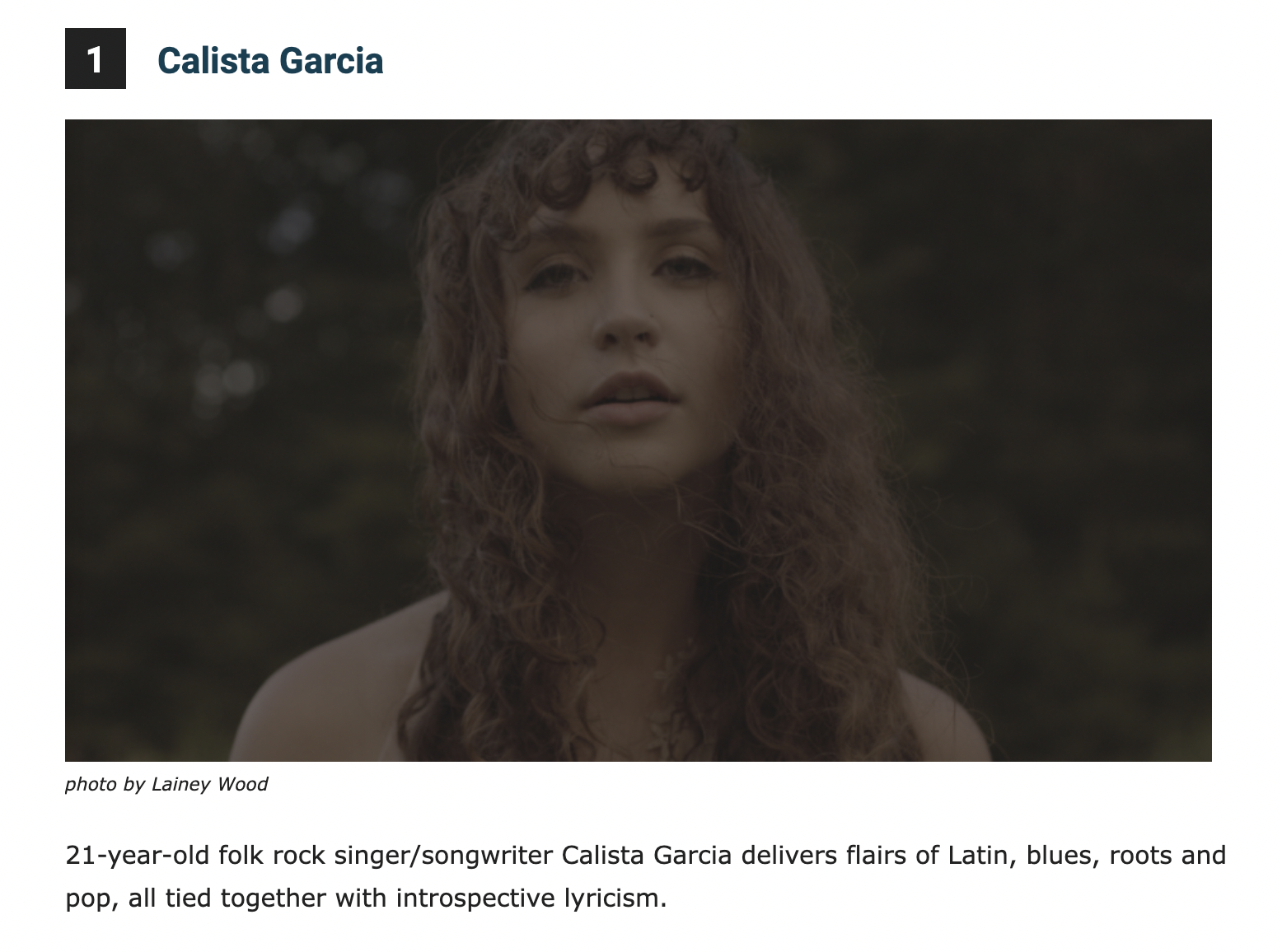 Calista Garcia has very impressively honed in on her distinctive singer-songwriter pop music style…successfully manages to tie together elements of Latin, blues, roots rock, folk, and pop music all into one, melding splendidly with her reflective lyrical style that has been turning heads.
